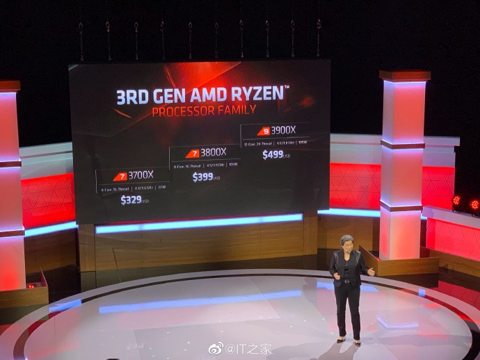 AMD总裁兼首席执行官Dr. Lisa Su,正在展示AMD新一代游戏产品和技术细节:AMD锐龙三代处理器价格公布!锐龙3600到3900X,价格从199美元到499美元,此外AMD Radeon 5700XT系列也正式亮相。