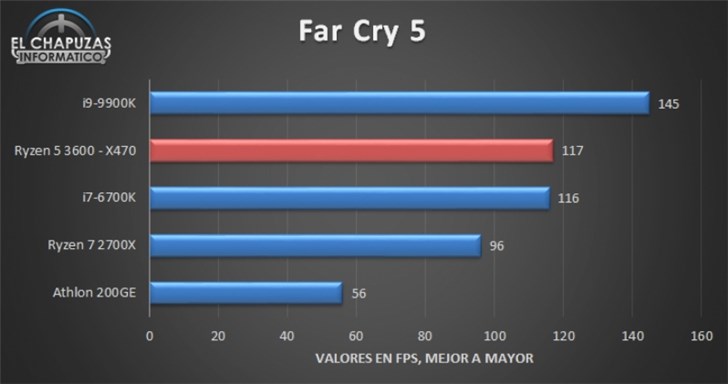 在《孤岛惊魂 5》中,AMD的Ryzen 5 3600比Ryzen 7 2700X的帧数更高,展示了AMD这一代更强大的单线程性能。