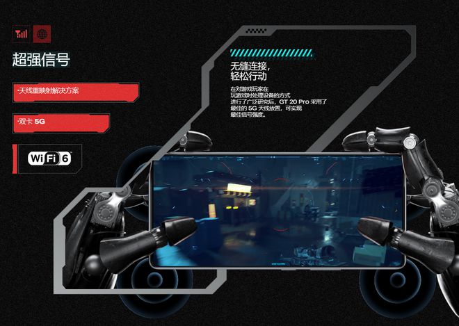 传音 Infinix GT 20 Pro 游戏手机支持双卡 5G、Wi-Fi 6,采用“天线重映射解决方案”,信号强度有所提升。