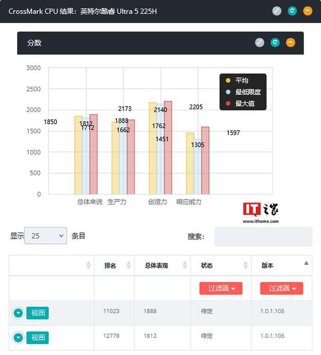 285H 和 Ultra 5 225H 两款“Arrow Lake”处理器现身 Bapco CrossMark 跑分库,从跑分来看,相比较上一代提升