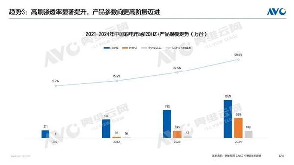 特别值得注意的是,高刷新率电视的表现尤为抢眼。