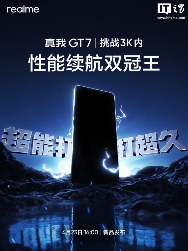IT之家此前报道,真我将于 4 月 23 日下午 4 点举办新品发布会,发布真我 GT 7 手机。据真我 realme 副总裁、全球营销总裁、中国区总裁徐起此前介绍,真我 GT 7 将成为首款搭载天玑 9400 + 处理器的性能旗舰,目标是打造 3000 元以内价位段中性能与续航的双冠王。
