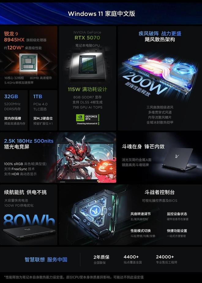 相较于首发的 RTX 5060 配置,新型号在提升 GPU 规格的同时 CPU 升级至频率更高的锐龙 9 8945HX。该笔记本电脑采用三风扇散 + 内导流鳍片热系统,整机性能释放 200W ,CPU 单烤 120W、GPU 支持 115W 满功耗。