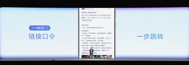 新系统引入“小 V 圈搜 2.0”,支持一步轻松消除路人,一步识别地址跳转地图导航叫车,一步在电商平台搜索同款产品。引入“小 V 记忆 2.0”功能,可随时记录用户的信息,随时记录,随地取用。