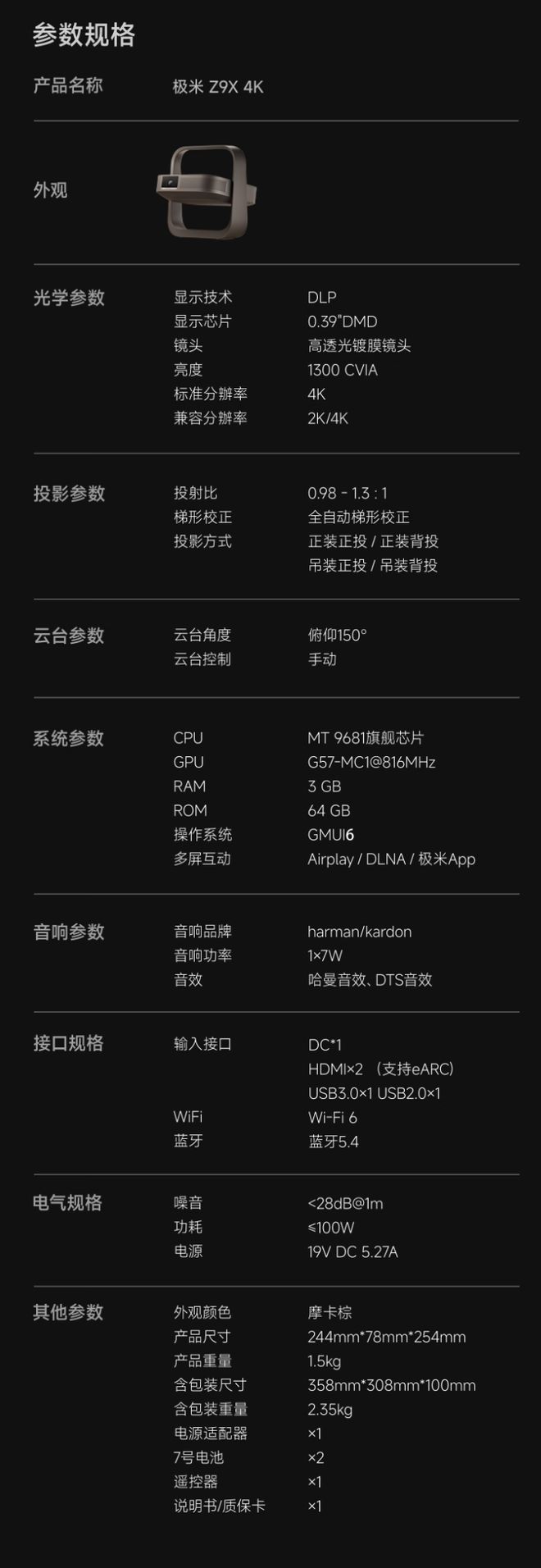 10 月 10 日消息,全新轻薄 4K 变焦投影极米 Z9X 今晚发布,现已在京东平台开启预约,售价 4124 元,国补后 3299 元,10 月 15 日 20:00 开售。