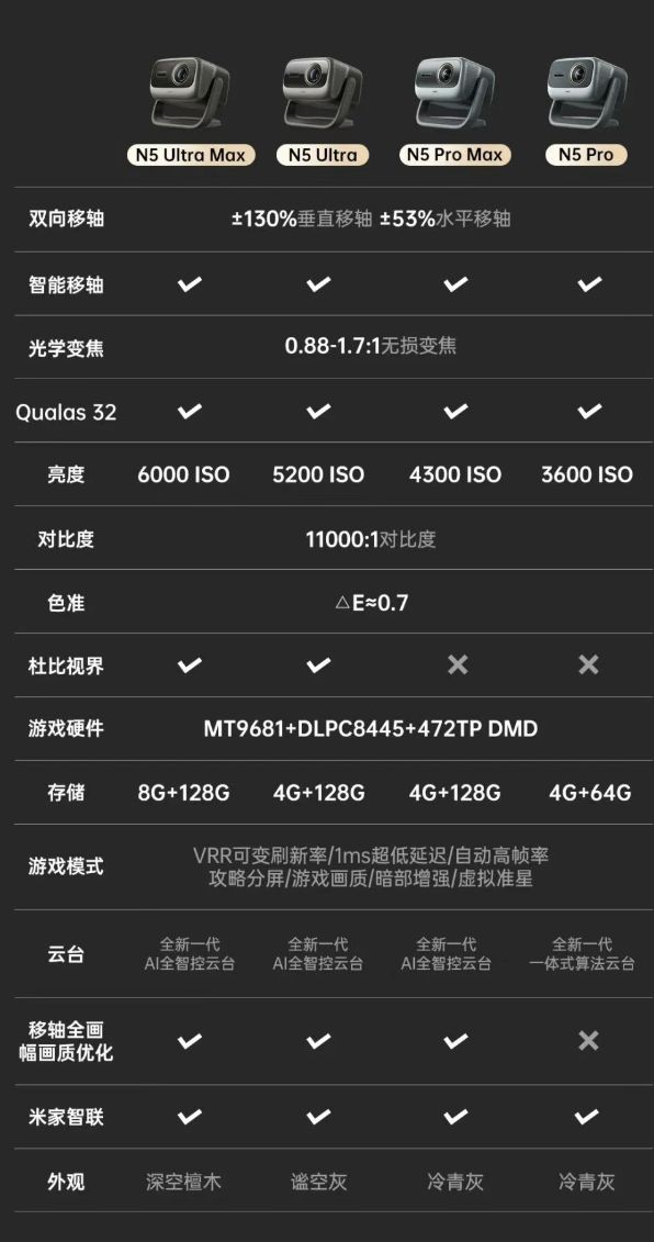 10 月 10 日消息,坚果 N5 系列投影今晚正式发布,共推出 N5 Pro、N5 Pro Max、N5 Ultra、N5 Ultra Max 四款型号,首发价 9374 元起,国补价 7499.2 元起。