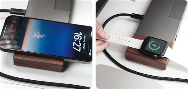 这款扩展坞还配备了一个0.99英寸的状态显示屏,方便用户实时监控设备状态。还集成了无线充电,可用于为手机和智能手表充电。