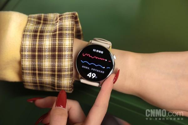 除此之外,OPPO Watch S的60秒体验更是可以进行一个全面的检测。通过手指轻触表冠下侧的电极触控区就可以进行快速体检,涵盖心脏健康、睡眠健康以及身心健康多个维度的13项健康指标监测,为用户的健康保驾护航。