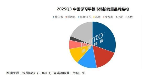 从品牌维度看,2025年第三季度,中国学习平板市场销量维度下的前六品牌(依次是:作业帮、学而思、科大讯飞、小猿、步步高、小度)的合计份额高达81.2%。