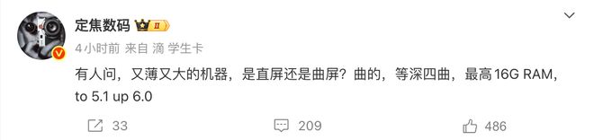 10月28日,数码博主“定焦数码”曝光了华为Mate 70 Air的配置,该产品将搭载等深四曲屏,最高提供16GB内存,出厂预装鸿蒙OS 5.1系统,可升级至最新的鸿蒙OS 6。