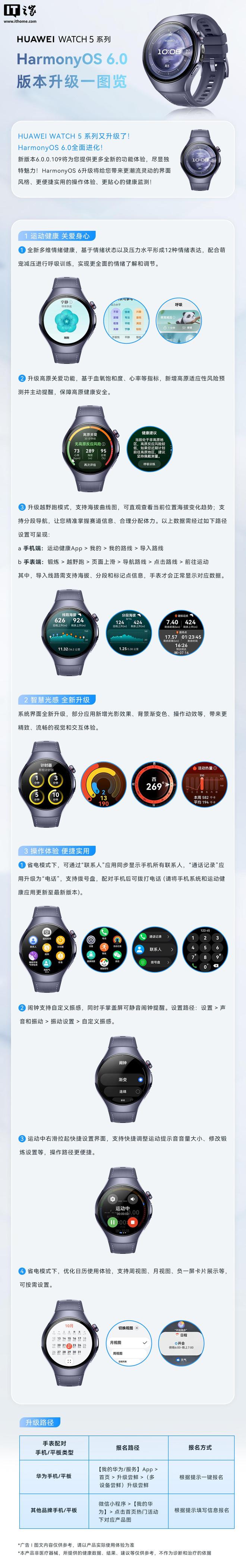 10 月 29 日消息,据华为官方团队账号 @智能穿戴 今日消息,HUAWEI WATCH 5 系列智能手表已开启 HarmonyOS 6 花粉 Beta 版 6.0.0.109 SP11 升级,该版本今日起分批推送给 HarmonyOS 6 花粉 Beta 版尝鲜报名入选成功的用户。需要注意的是,本次设备一经升级将无法回退。
