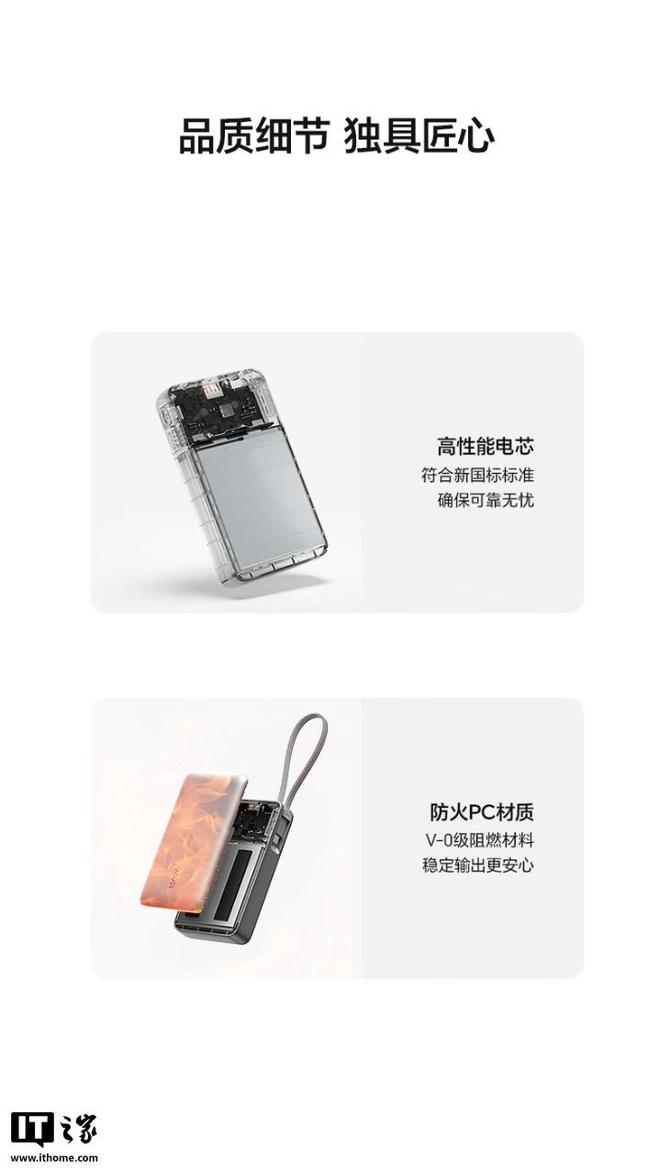 此外,这款充电宝的外壳采用防火 PC 材质,可选钛金色、摩卡色两种配色。