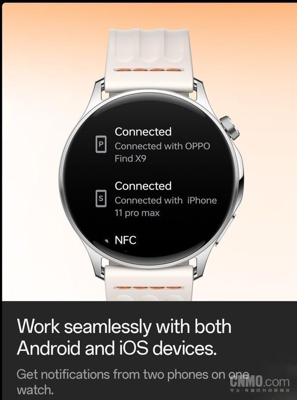 一加手表Lite将兼容Android和iOS设备,并支持一项独特功能:允许用户在一块手表上同时接收来自两部手机的提醒通知。手表还内置了NFC,以支持便捷的接触式支付等功能。在续航方面,一加宣称其单次充电可提供长达10天的电池寿命。