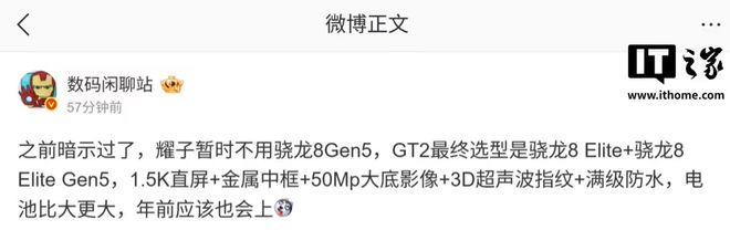 博主 @复读机002 在微博中配文指出:“荣耀 GT2 ✘,荣耀 WIN ✔。定位还是极致性能旗舰,双旗舰齐发,本月见!”