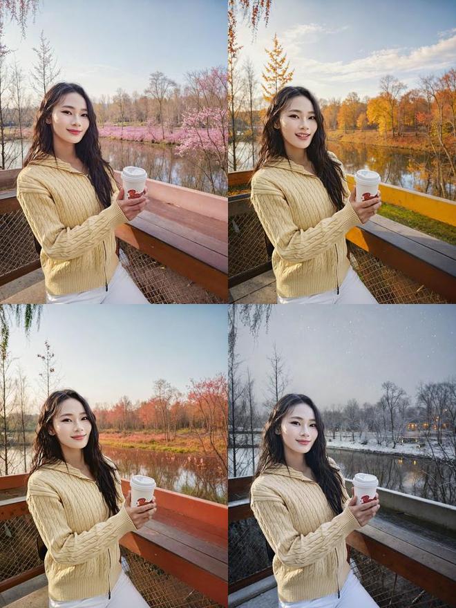想要拍一些反季节的照片,vivo S50 的AI 四季人像功能可以满足你。无论是冬天拍出绿意盎然的夏日感,还是夏天定格银装素裹的雪景,短短几秒就能生成逼真的四季风格大片。