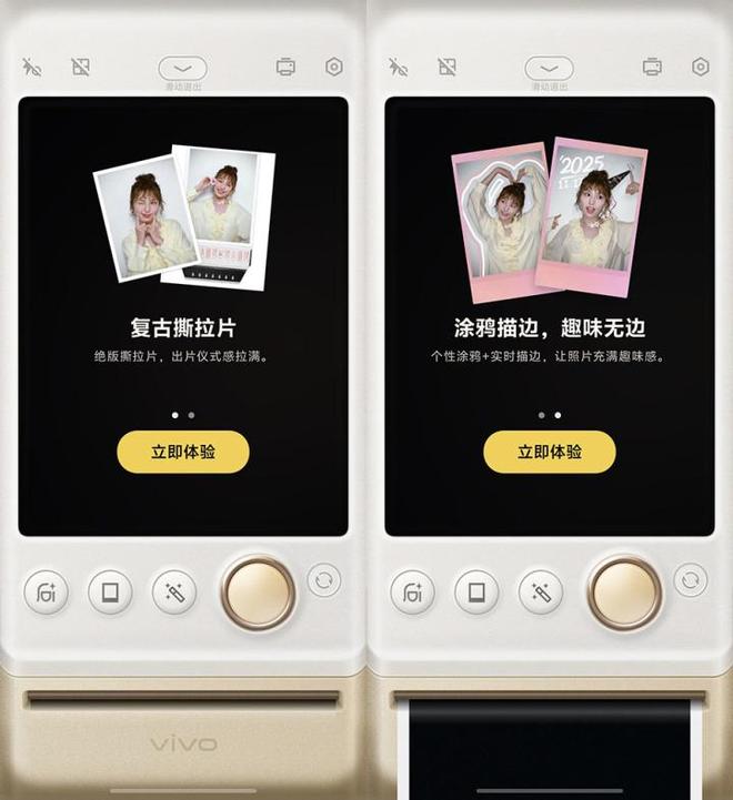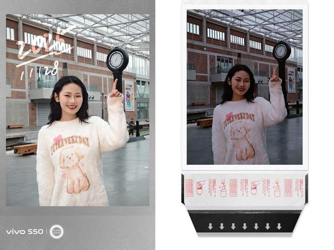 在大家比较看重的复古胶片相机上,vivo S50的一拍得胶片相机,不仅有着贴近相机的拍照接片,让拍照更有仪式感。有着更多自定义元素的相纸模板,则能玩出更多的新花样。