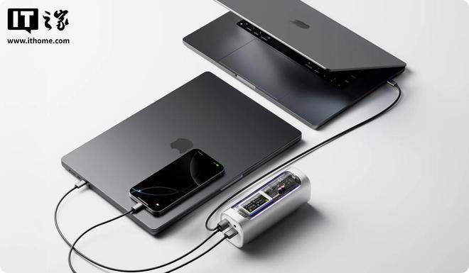 设计方面,这款充电宝内置 24000mAh 电池,最高支持 140W 输入,整体采用银灰色铝合金外壳,正面则拥有一个透明窗口,配备一块彩色数显屏幕,可查看输入 / 输出功率、温度、电池状态等信息,还拥有 RGB 灯带。