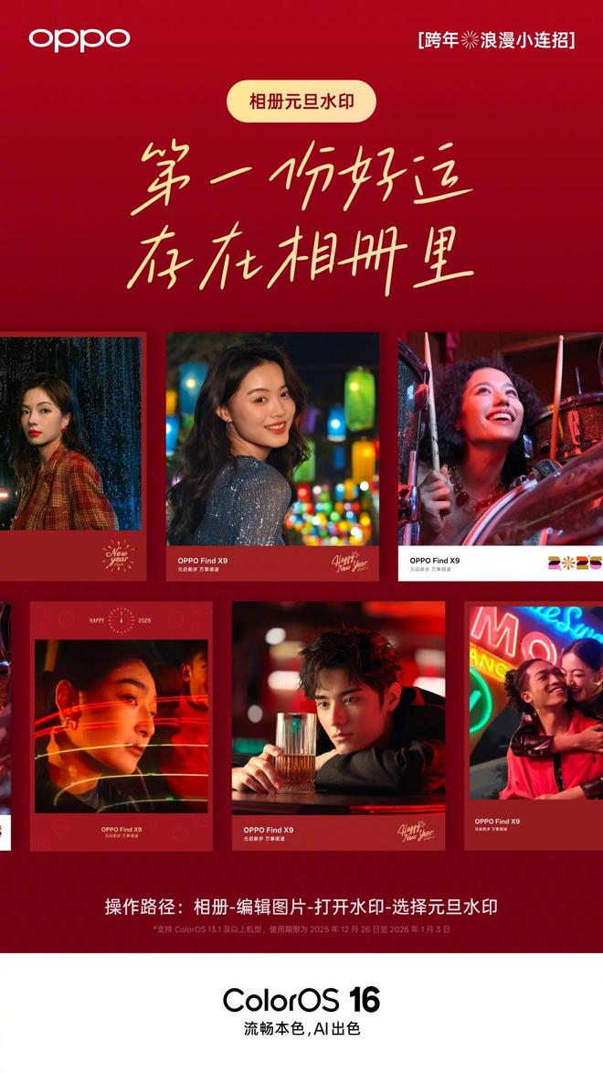 12 月 26 日消息,ColorOS 今日宣布,元旦将至,OPPO 相册元旦水印已上线。将新年的第一份好运和难忘的回忆,放在相册里吧。