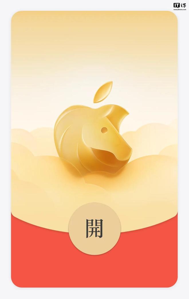 1 月 6 日消息,为庆祝 2026 年马年农历春节(2 月 17 日为初一),苹果在微信上线了红包封面,有效期 3 个月,截至IT之家发稿仍可领取,同时,苹果还推出了新年壁纸,提供 Mac / iPad / iPhone / Apple Watch 多个尺寸,IT之家附领取地址如下(https://mp.weixin.qq.com/s/71VAuEytDxNB2Kl7fDisDA)。