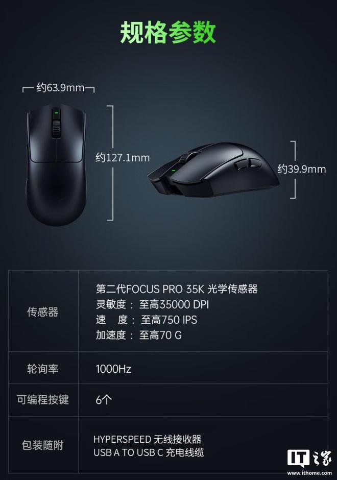 雷蛇毒蝰 V3 专业版 SE 鼠标现已发售,售价 896 元,国补后 794.2 元,IT之家附参数表如下: