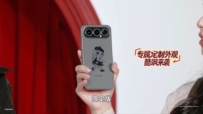 据了解,礼盒内含磁吸补光灯手机壳、MOLLY定制挂绳、主题取卡针等全套周边,礼盒自带发光效果;手机背盖镭刻MOLLY标识,系统深度定制主题UI、动态壁纸及随机MOLLY水印拍照功能,五连拍底色可自动切换,实现"从开箱到使用"的沉浸式IP体验。同时,保留了荣耀500 Pro的旗舰配置:骁龙8至尊版旗舰芯片、8000mAh青海湖电池,并且融入了4K实况摄影技术,每帧画面可设为壁纸,兼顾科技性能与潮玩趣味性。