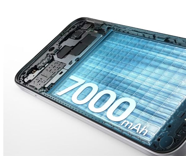 内置7000mAh电池,采用高性能石墨电芯,配合自修复电解液技术,延长电池寿命,可实现六年长寿,并支持45W超级快充、OTG反向充电。