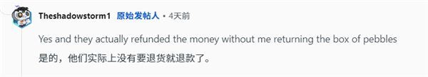 幸运的是,亚马逊已为该受害者办理了全额退款,且未要求退回这盒石头,买家免费获得一箱鹅卵石。