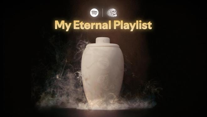 收到这款骨灰盒音箱后,你可以在 Spotify 上创建专属的永恒歌单,只需回答诸如“你的永恒氛围是什么?”“你最爱的阴间 BGM 是哪首?”等问题。Spotify 会根据你的答案和听歌记录生成定制歌单,直接同步到骨灰盒音箱,并可分享给亲友。