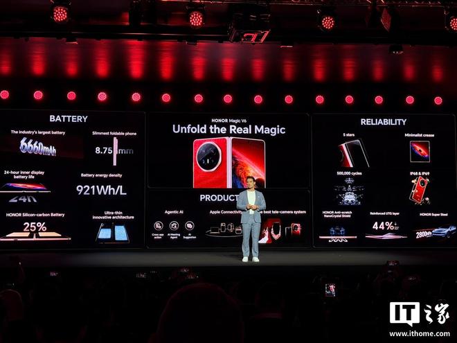 据介绍,荣耀 Magic V6 的这块电池硅含量突破 32%,翻倍领先行业均值;能量密度 985Wh/L,超车规级动力电池。