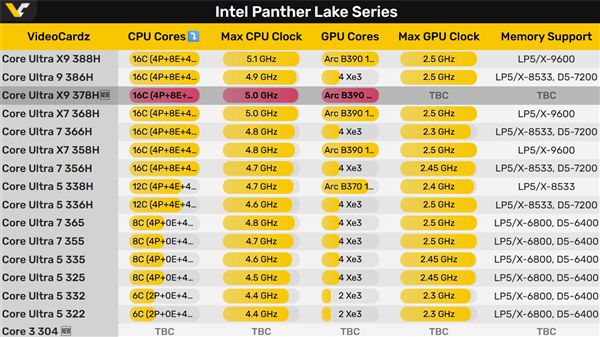 3月6日消息,Intel Panther Lake家族的酷睿Ultra 300H系列笔记本即将陆续上市,而根据路线图,Intel又准备了一款新型号:"酷睿Ultra X9 378H"。