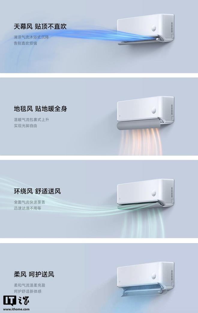 该空调提供 908 cm² 导风板、108mm 风叶,提供新一级能效,内置米家灵云智控引擎,支持小米澎湃智联家庭控制。