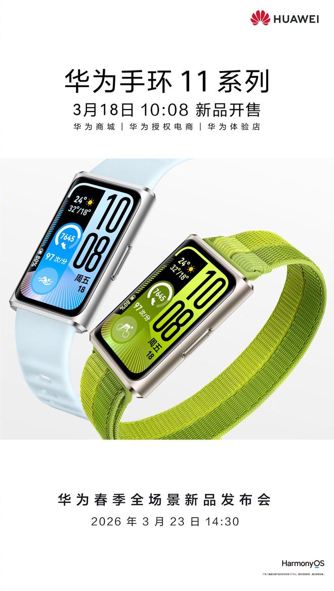 3 月 18 日消息,华为官方今日宣布,全新华为手环 11 系列今日正式开售,官方定价 269 元起,首发价 259 元起。