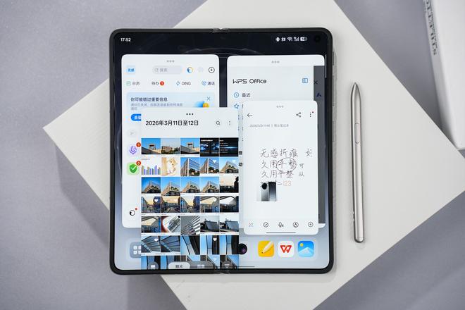 最近一直当主力机体验,日常我也会带着OPPO Find N6去开会、出差、拍摄,这个过程中,我没有在手机、电脑、笔记本、相机之间来回切换,也没有在无数个App中反复横跳。所有的捕获、思考、整理、输出,都在这一块展开的屏幕上,由手指和一支笔流畅完成。