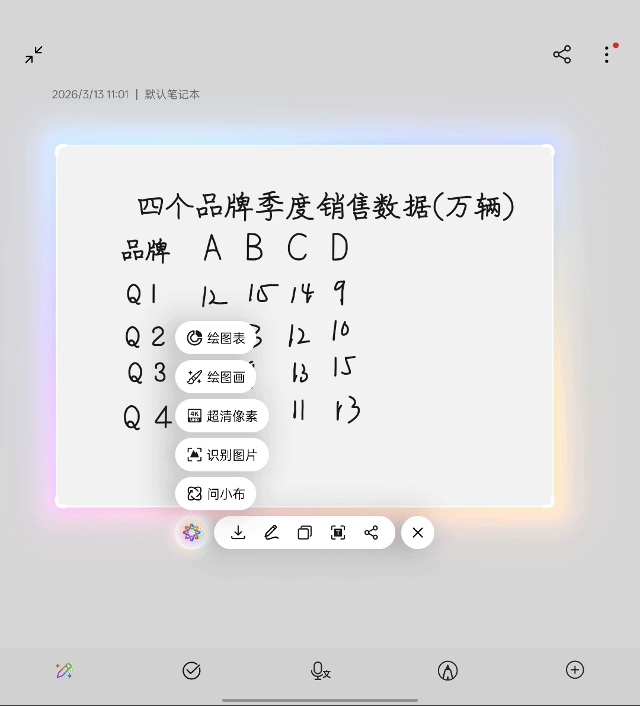 “一圈即得”,化草率为成果。这是它最革命性的交互。在会议中随手画的潦草图表,圈选后,AI能瞬间将其识别并美化为专业的柱状图、折线图。头脑风暴时勾勒的业务流程图草图,一圈之后,AI不仅能规整线条,还能智能补全逻辑节点,生成可直接使用的专业图表。它跳过了“在电脑上用专业软件重做一遍”这个最耗时的步骤,让灵感落地速度提升了数个量级。