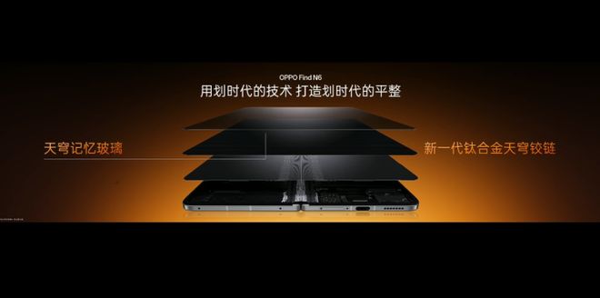 OPPO Find N6的无感折痕体验,则打破了折痕对折叠屏手机的影响。为此,OPPO Find N6首发了无痕钛合金铰链与自修复记忆玻璃两大核心技术,无痕钛合金铰链不仅具备强悍的结构强度,更借助芯片级高分子3D打印工艺,实现了极致平整的表面处理。当手机展开时,铰链能对屏幕形成全面且均匀的托举,让屏幕中央受力始终保持平衡,从根源上减少折痕的产生与留存。
