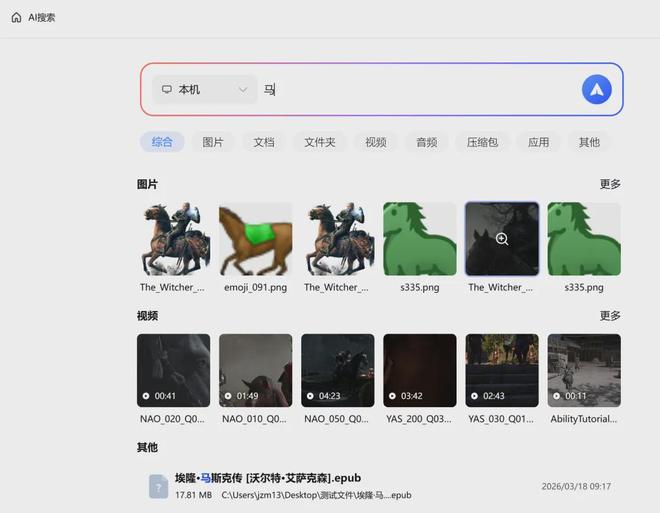 首先是AI深度搜索。以往用系统自带的搜索,经常找不到想要的内容,尤其是一些隐藏在压缩包、音频文件里的内容,更是无从下手。而PC超级小爱的AI深度搜索,利用本地AI模型,能解析音频、图片里的语义信息,精准找到目标内容。