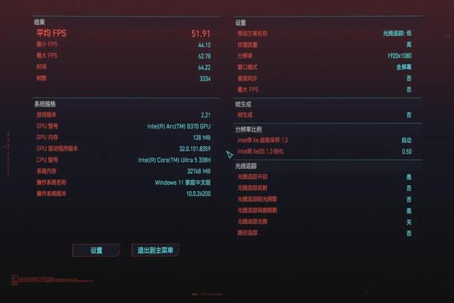 如果将分辨率降到1080P,即便开启高画质+光线追踪,也能稳定50 FPS以上,足以打破“轻薄本不能玩3A游戏”的固有印象。当然,要是你画质和帧率都想要,那还是老老实实选择游戏本吧。