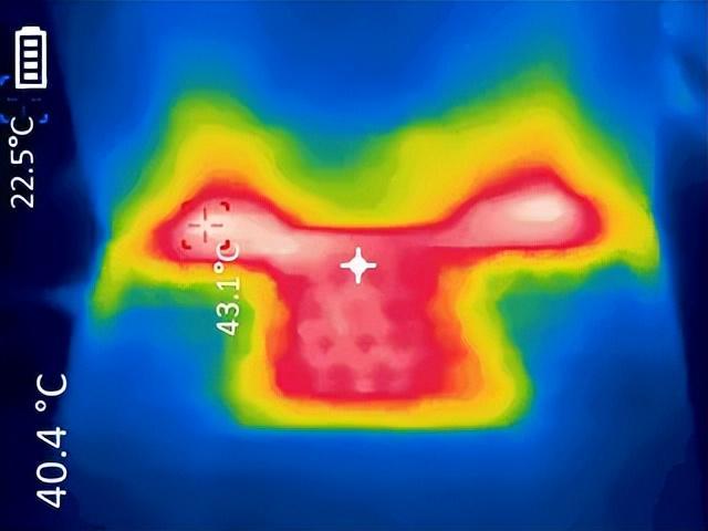 在长时间满载运行下,CPU封装温度74℃,毫无压力。C面温度也能稳住,常用的ASDW区域能够保持凉爽,高温集中在键盘中心区域,稳定在40℃左右,最高温区域在背部出风口,也只有43℃,完全可以接受。