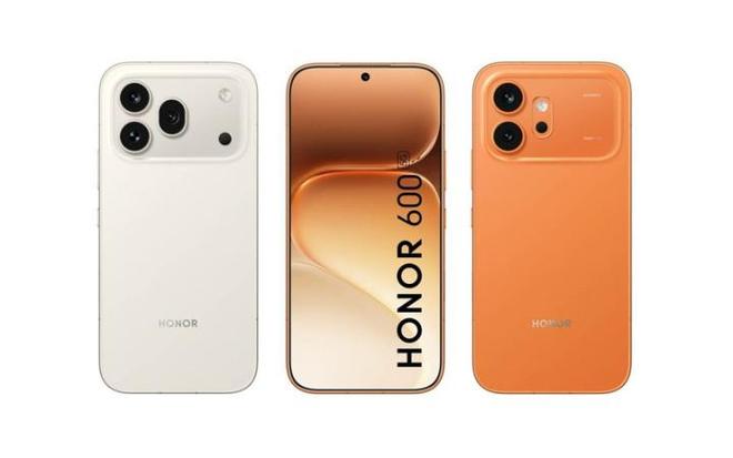 外观层面,荣耀600系列两款机型的设计思路与iPhone 17 Pro系列过于相似。机身采用平整大R角轮廓,搭配金属中框与玻璃后盖,质感偏向旗舰定位。背部搭载横向贯穿式大矩阵影像模组,摄像头、闪光灯、的排布方式,与苹果新款旗舰的镜头模组视觉效果几乎一致。配色方面也提供了橙色版本。