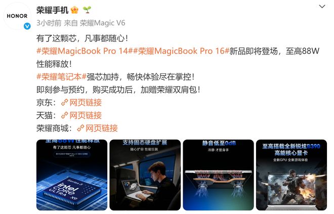 在轻薄本板块,荣耀划分为荣耀笔记本和荣耀 MagicBook 两大序列。其中,荣耀 MagicBookPro 系列和数字系列,以及荣耀笔记本的 X 和 X Plus 系列,都将于 4 月正式发布。目前,荣耀 MagicBook Pro 14/16 2026 已全面开启预约。