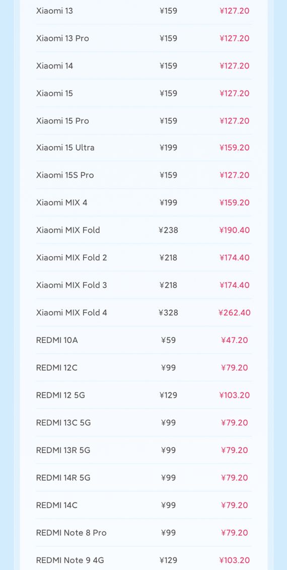 据介绍,本月8折电池换新服务共支持77款机型,售价47.2元起。