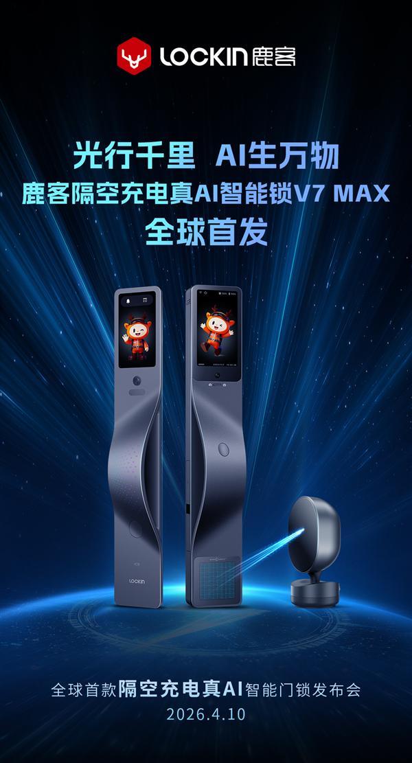 4月9日消息,据鹿客官方介绍,鹿客真AI智能锁V7 Max将在明天发布,目前已经开启预售,定价4799元。