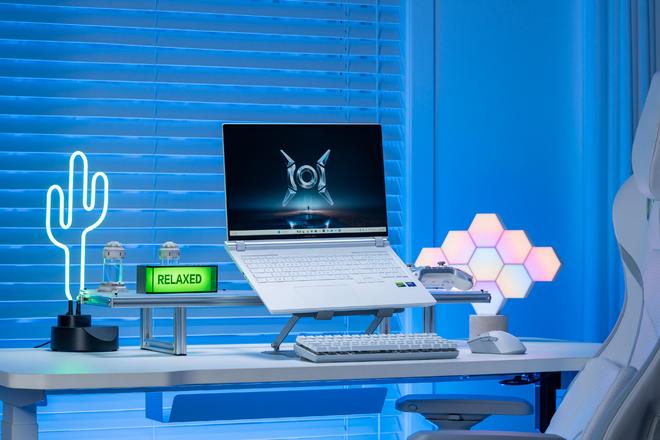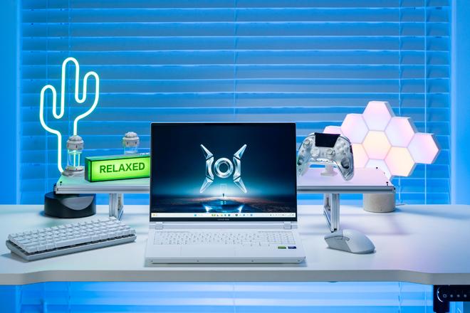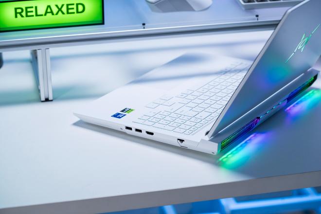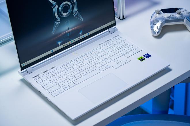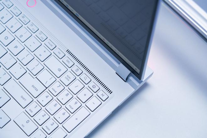我手上这台是白色,游戏本A面是猎人logo,B面16英寸雾面屏,而且是对眼睛更友好的高素质LCD屏幕,C面则是全尺寸键盘,并带有数字小键盘,同时支持ARGB 多分区背光。