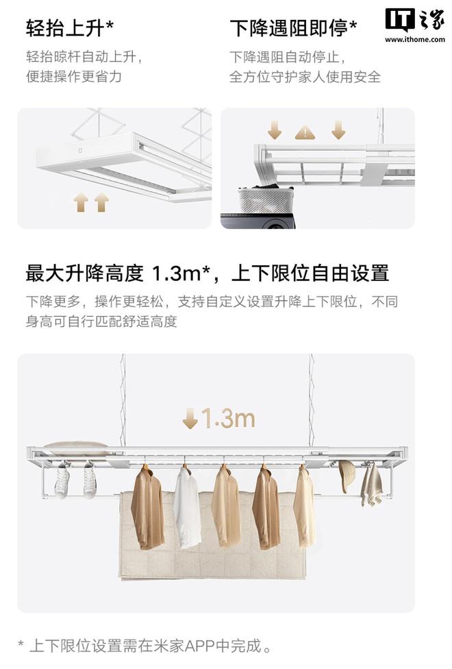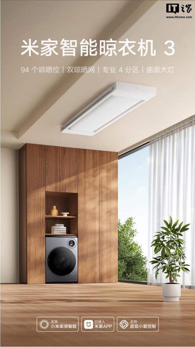 4 月 20 日消息,小米米家智能晾衣机 3 今日起在有品开启众筹(点此访问),众筹到手价 1299 元。