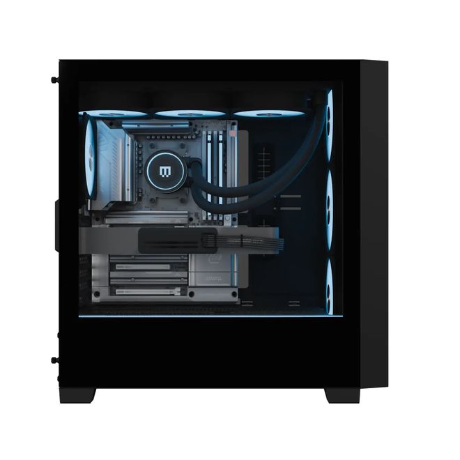 该处理器是首款在双 CCD 上应用 3D V-Cache 技术的桌面 CPU,提供 192MB L3 缓存,显著优化特定 AI 工作负载。MG-1 MkII 整机采用顶部 360mm 一体式水冷散热器,配合 3 个 140mm 进气风扇与底部大型导风槽。