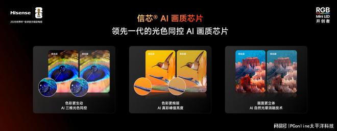 信芯AI画质芯片是这套系统的“超强大脑”,核心能力是108bits精度的三维光色同控。传统的画质芯片大多专注于亮度控制,色彩管理能力相对薄弱。信芯AI画质芯片可以独立调控每个RGB发光芯片的亮度与色彩,配合AI防串色和AI自然光晕消融技术,实现毫秒级的画面优化。这意味着当用户在观看快速运动画面时,系统可以实时识别并优化运动物体的边缘,防止色彩污染。