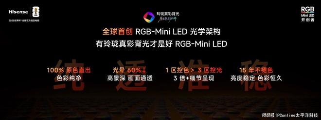 海信解决这个问题的方式是自研芯片。乾照光电提供的车规级9晶RGB发光芯片,配合海信自研的信芯AI画质芯片,实现了“三维光色同控”。简单说,传统方案是“先控光再调色”,RGB-Mini LED方案可以同时独立调控每个背光分区里红、绿、蓝三色芯片的亮度和色彩,这让“1区控色>3区控光”成为可能。