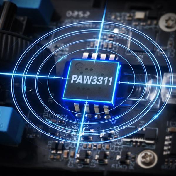 传感器选用原相PAW3311光学引擎,最高支持12000 DPI和35g加速度,1000Hz回报率。微动开关采用环诺20M,寿命达2000万次,反馈清脆,足以扛住高强度电竞局的持续敲击。