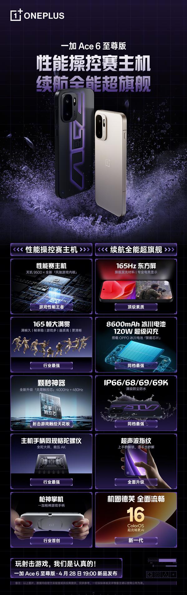 游戏体验方面,一加Ace 6至尊版还配备电竞网络芯、主机级陀螺仪,并支持专属一加枪神游戏手柄。