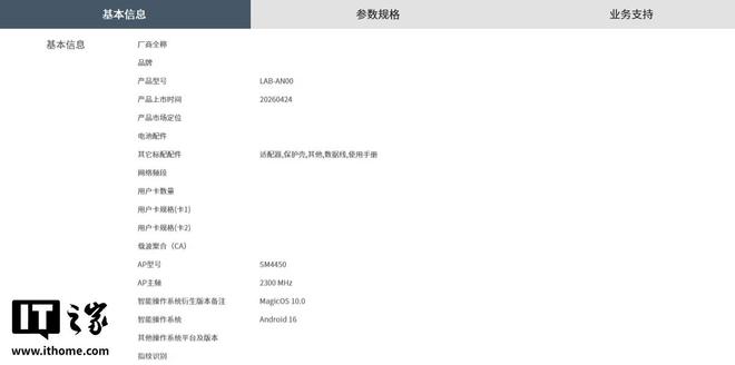 4 月 27 日消息,型号为 LAB-AN00 的荣耀畅玩 80 Plus 手机已现身中国电信终端产品库,拥有 6GB+128GB、6GB+256GB、8GB+128GB、8GB+256GB、12GB+256GB 五种规格版本,并提供浮光金、墨岩黑、水悠蓝三种配色,产品零售价格尚未公布。
